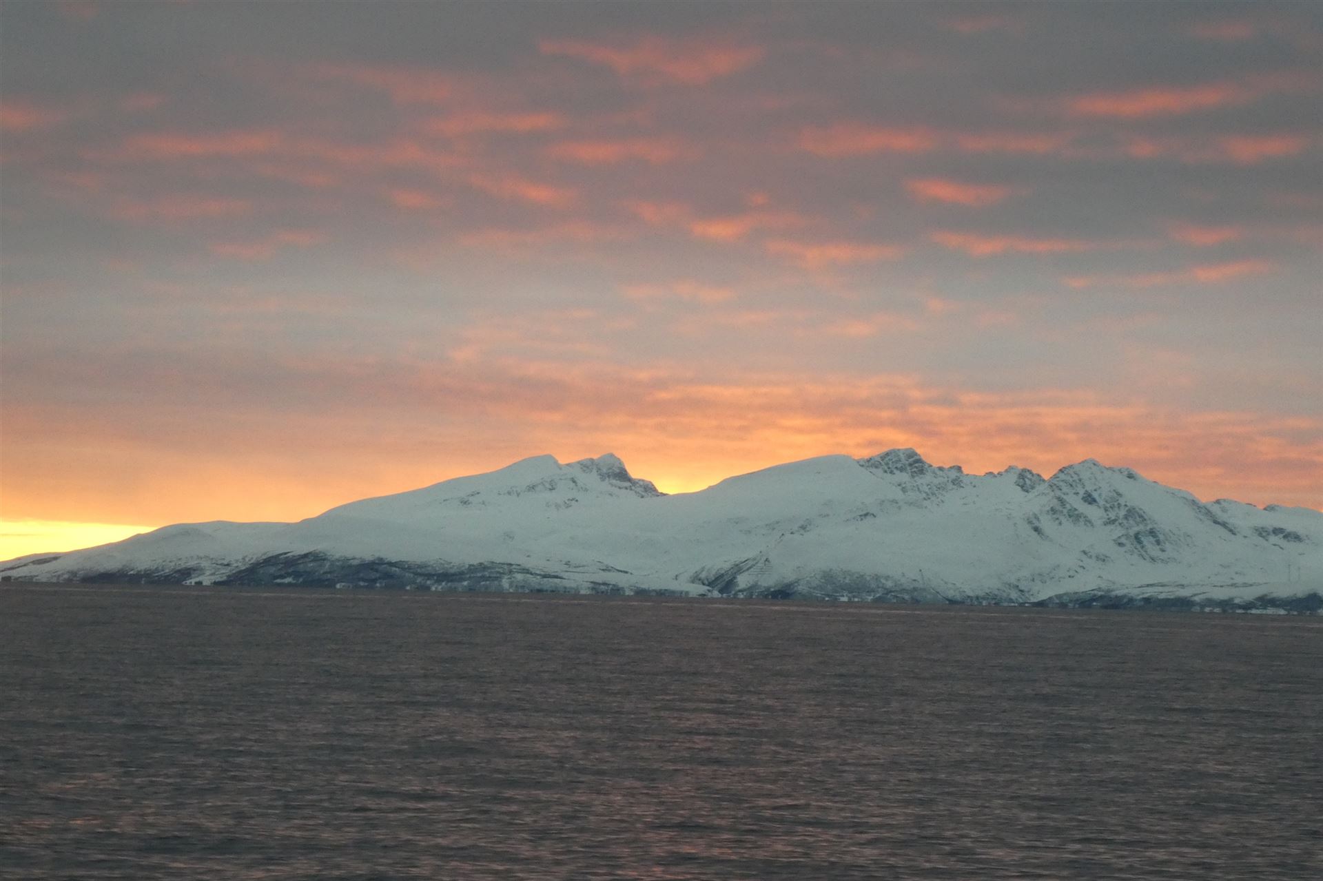 Linienflug von Deutschland über Oslo nach Tromsö mit SAS bzw. Lufthansa. Kurzer Transfer zum Hafen und Treffpunkt am Clarion Collection Hotel, Tromsö. Norwegen Auslaufen in der Abendsonne und Fahrt zum ersten Ankerplatz direkt am Bergfuß unseres ersten Tourenziels.