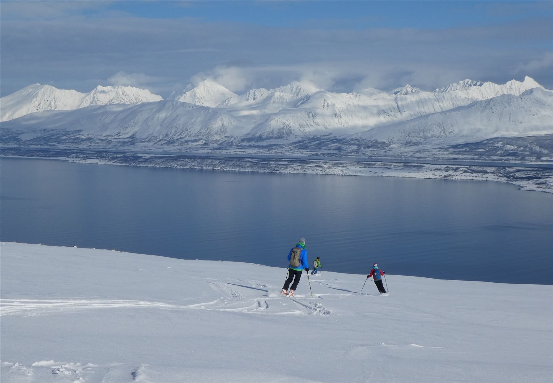 An der Küste und in den Fjorden im nördlichen Norwegen befinden sich die wohl schönsten Skitourenziele und Gipfel Skandinaviens. Die „Lyngen Alps“ sind zweifellos der Festsaal für Skitouren mit Schiff. Direkt vom Meer aus erstrecken sich diverse Tourenziele mit Aufstiegen von bis zu 1.400 Höhenmeter. Die weitläufigen und großzügigen Abfahrten in überwiegend gleicher Steilheit bieten für Genießer als auch Könner Erlebnis pur. Wir wohnen auf einem komfortablen Schiff mit "Hotelkomfort" und gehobener Ausstattung. Das Schiff bringt uns täglich in interessante und malerisch gelegene Fjorde und Buchten. Durch das mitgeführte Beiboot können auch diverse einsame Skitourenhighlights angesteuert werden, da wir fast überall an Land gehen können. Im Gegensatz zu beengten Segelbooten verfügt unser schwimmendes Hotel über geräumigere und komfortable Kabinen, eine exzellente Küche, Speise- und Aufenthaltsraum mit kleiner Bar sowie Sauna und Hot- Tub. Die Schiffscrew bietet besten Rund um Service in gemütlicher Atmosphäre. Erholung nach der Tour ist garantiert!