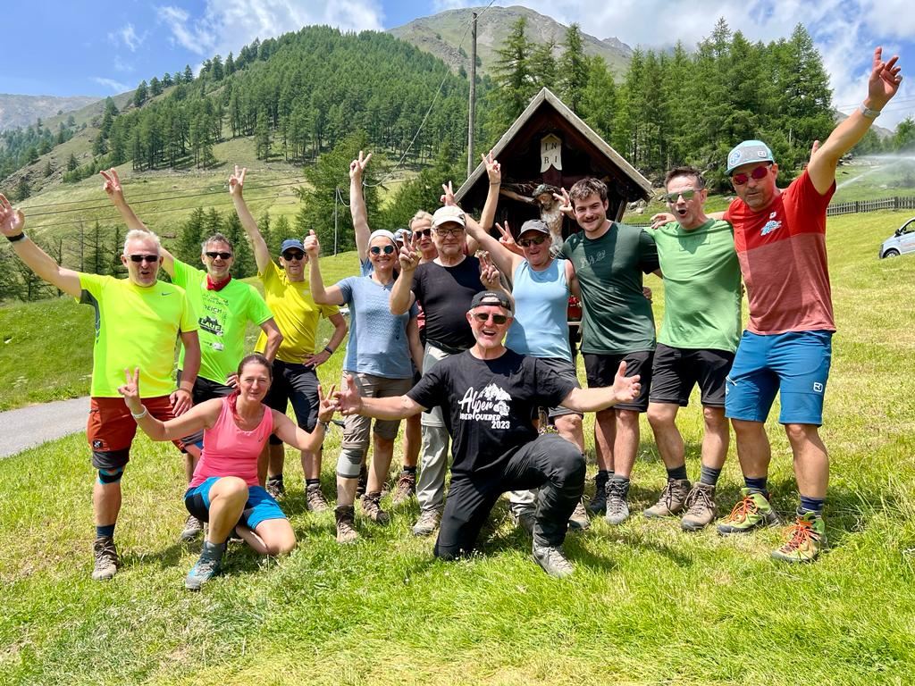 Mini Rucksack: Unsere Minirucksäcke mit Alpenüberquerungslogo, die jeder Teilnehmer bei Tourstart von uns erhält, sind mittlerweile Deutschlandweit bei diversen Aktivitäten verbreitet. Hier erkennen Sie echte Alpenüberquerer
